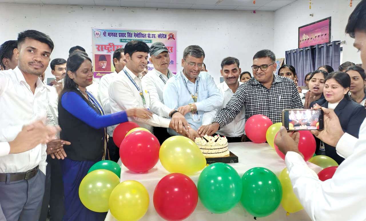 फोटो नंबर-2- केक काटकर जयंती मनाते प्राचार्य व शिक्षक प्रतिनिधि, औरंगाबाद कार्यालय. देव मोड़ स्थित श्री भागवत प्रसाद सिंह मेमोरियल बीएड कॉलेज में राष्ट्रीय शिक्षा दिवस के अवसर पर स्वतंत्र भारत के प्रथम शिक्षा मंत्री मौलाना अबुल कलाम आजाद की जयंती मनायी गयी. केक काटकर मौलाना अबुल कलाम आजाद को याद किया गया. प्राचार्य डॉ अरविंद कुमार यादव ने संबोधित करते हुए कहा कि शिक्षा का लक्ष्य सभी को समानता, समावेशी और सार्वभौमिक शिक्षा उपलब्ध कराने का लक्ष्य है. देश के प्रथम शिक्षा मंत्री के समय में उच्च एवं उच्चतर शिक्षा के लिए राधाकृष्ण आयोग का गठन, माध्यमिक शिक्षा के लिए मुदालियर आयोग का गठन व विश्वविद्यालय अनुदान आयोग की स्थापना शिक्षा के क्षेत्र में महत्वपूर्ण बदलाव किये गये थे. मौके पर जयप्रकाश पाल, ब्रजेंद्र कुमार, विकास चौबे, सुदामा सिंह यादव, डॉ कमलेश पांडेय, राम विजय चौरसिया, अभिषेक पांडेय, श्रेया गुप्ता, दीपक पाठक, अभिषेक मिश्रा, राहुल सिंह, चंदन सिंह, मोहन सिंह, मुकेश कुमार, रौशन सिंह आदि का भरपूर योगदान रहा.