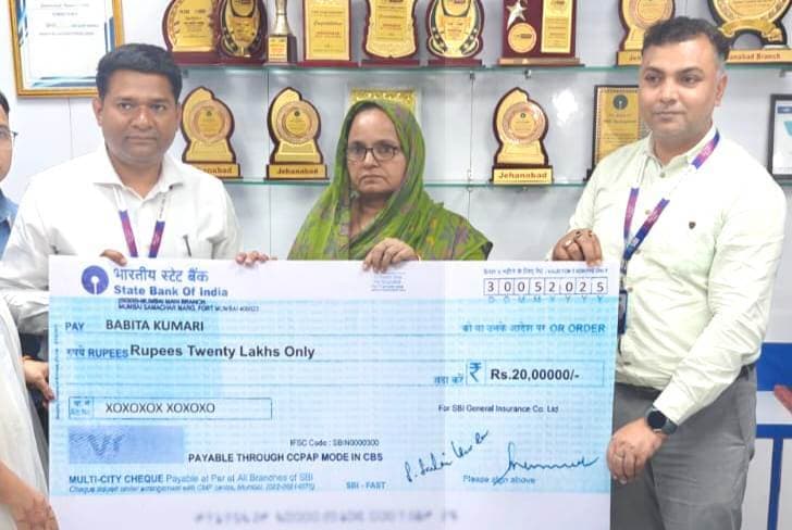 औरंगाबाद नगर. एसबीआइ के क्षेत्रीय प्रबंधक अमित कुमार ने जहानाबाद शाखा द्वारा व्यक्तिगत दुर्घटना बीमा योजना के अंतर्गत वीरेंद्र कुमार शर्मा की पत्नी बबीता कुमारी नामिती को 20 लाख रुपये की धनराशि प्रदान की गयी. यह धनराशि चेक द्वारा अमित कुमार, क्षेत्रीय प्रबंधक, क्षेत्रीय व्यवसाय कार्यालय औरंगाबाद द्वारा दी गयी. उन्होंने परिवार को हुए अपूर्णीय क्षति के लिए अपनी संवेदना व्यक्त की. इस दौरान मुख्य प्रबंधक मनीष कुमार, निशा क्षेत्र पदाधिकारी एसबीआइ जेनरल के अधिकारी व अन्य लोग मौजूद थे. जानकारी मिली कि स्व वीरेंद्र कुमार शर्मा उत्क्रमित मध्य विद्यालय, कल्पा खुर्द में विज्ञान के अध्यापक के तौर पर कार्यरत थे. उन्होंने भारतीय स्टेट बैंक जहानाबाद शाखा से एक हजार रुपये का पाई पर्सनल एक्सीडेंट इंश्योरेंस करवाया था. इसके तहत सालाना प्रीमियम पर व्यक्ति को 20 लाख रुपये की बीमा राशि मिलती है, अगर दुर्घटना से उसकी मृत्यु या अपंगता हो जाती है. क्षेत्रीय प्रबंधक अमित कुमार ने सभी ग्राहकों को इसके बारे में जानकारी दी. उन्होंने बताया कि वीरेंद्र कुमार शर्मा ने एसबीआइ में एक हजार रुपये का दुर्घटना बीमा करवाया था. दुर्भाग्यवश सड़क दुर्घटना में उनकी मौत हो गयी. इसके बाद एसबीआइ की ओर से मृतक के परिवार को 20 लाख रुपये का बीमा राशि का भुगतान किया गया. यह दर्शाता है कि एसबीआइ एक दुर्घटना बीमा योजना के माध्यम से अपने ग्राहकों को वित्तीय सुरक्षा प्रदान करता है, भले ही प्रीमियम कम हो.