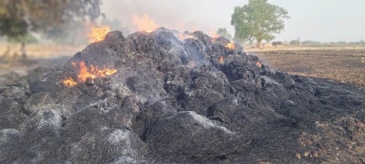 हार्वेस्टिंग के बाद अवशेष जलाने की चूक पड़ी भारी, पशु चारे का संकट