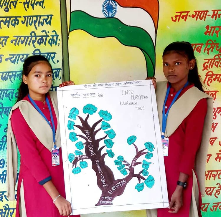 एक भारत श्रेष्ठ भारत की भावना को सशक्त बनाने के उद्देश्य से आयोजित किया गया कार्यक्रम अंबा. एक भारत श्रेष्ठ भारत की भावना को सशक्त बनाने उद्देश्य भारतीय भाषा उत्सव का सप्ताहिक आयोजन किया जा रहा है. कार्यक्रम की शुरुआत गुरुवार को की गयी जो लगातार 11 दिसंबर तक चलेगा. इस दौरान विद्यालय में अलग-अलग शैक्षणिक एवं सांस्कृतिक गतिविधि का आयोजन किया जायेगा. पहले दिन गुरुवार को पीएमश्री मध्य विद्यालय कुटुंबा में बच्चों ने लैंग्वेज ट्री की पेंटिंग बनायी गयी. पेंटिंग में इंडो आर्यन, इंडो ईरानी एवं इंडो यूरोपियन की कई भाषाओं को दर्शाया. बच्चों ने इंडो ईरानी में पर्शियन व बलूच भाषा को अंकित किया वहीं इंडो आर्यन में हिंदी, बंगाली, सिंधी,कश्मीरी, संस्कृत, गुजराती मराठी उर्दू आदि भाषाओं को रखा. इंडो यूरोपियन में डच, जर्मनी, इंग्लिश, फ्रेंच, इटालियन, स्पेनिश, रूसी आदि भाषाओं का उल्लेख किया. कार्यक्रम का नेतृत्व कर रहे प्रधानाध्यापक चंद्रशेखर प्रसाद साहू ने कहा कि भारत में विविध प्रकार की भाषाएं बोली और समझी जाती हैं. ये विविध भाषाएं मिलकर भारत को समृद्ध और सशक्त बनाती है. विभिन्न भाषा होने के बावजूद भारत एक है और श्रेष्ठ है. सभी भाषाओं की अपनी संस्कृति अपनी गरिमा है. हमें सभी भाषाओं का सम्मान करना चाहिए. इस तरह के कार्यक्रम का आयोजन होने से बच्चों को विभिन्न प्रकार की भाषाओं से परिचित होने का अवसर मिलता है. हम परिवार, समाज और विद्यालय में विभिन्न प्रकार की भाषाओं के अनेक शब्द सीखते हैं, जो बच्चे बहुभाषिक होते हैं, उनके सीखने का स्तर उच्च होता है. इस अवसर पर शिक्षिका रीता कुमारी, पूनम उपाध्याय, सत्येंद्र सिंह, युसूफ आलम, कमाल फातमा, सतीश कुमार सिंह, संगीता कुमारी, अहमद रजा, विमल चौहान आदि थे. प्रधानाध्यापक ने बताया कि शुक्रवार को कविता एवं संगीत, शनिवार को भाषिक त्योहार, सोमवार को मुहावरे, मंगलवार को पत्र व कहानी लेखन, बुधवार को भाषा अन्वेषण क्लब और गुरुवार को भाषा मेला कार्यक्रम आयोजित किया जायेगा.