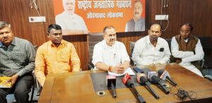 अपने आवासीय कार्यालय में आयोजित प्रेस वार्ता को संबोधित करते