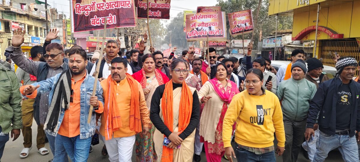 AURANGABAD NEWS.रविवार को बांग्लादेश में हिंदुओं पर अत्याचार बंद करो, दीपू के हत्यारों को फांसी दो, औरंगाबाद में गो हत्या बंद करो और धर्मानांतरण पर रोक लगाओ के नारे से औरंगाबाद जिला मुख्यालय गूंज उठा.