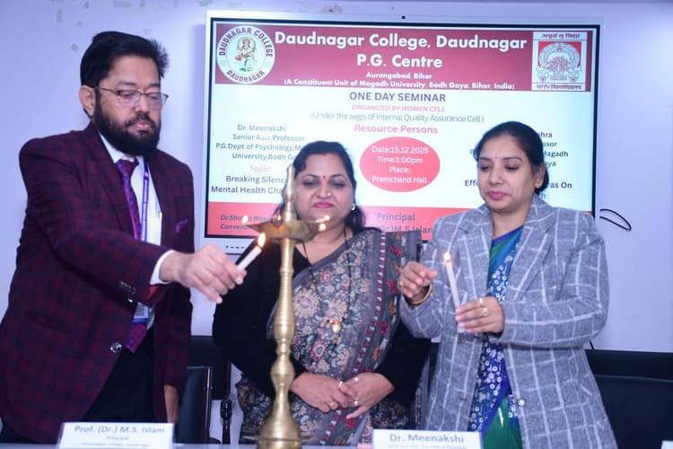 दाउदनगर कॉलेज में महिलाओं के मानसिक स्वास्थ्य पर महिला प्रकोष्ठ ने आयोजित किया सेमिनार दाउदनगर. दाउदनगर कॉलेज, दाउदनगर के महिला प्रकोष्ठ द्वारा आंतरिक गुणवत्ता आश्वासन प्रकोष्ठ के तत्वावधान में महिलाओं के मानसिक स्वास्थ्य विषय पर सेमिनार का आयोजन किया गया. सेमिनार में महिलाओं से जुड़ी मानसिक समस्याओं, उनके समाधान और जागरूकता पर विस्तृत चर्चा हुई. उद्घाटन अतिथियों द्वारा दीप प्रज्ज्वलित कर किया गया. कॉलेज की कला सृजन विभाग की छात्राओं ने विश्वविद्यालय कुलगीत एवं स्वागत गीत प्रस्तुत किया. महाविद्यालय के प्रधानाचार्य प्रो डॉ एमएस इस्लाम ने सभी अतिथियों का स्वागत किया. अध्यक्षता करते हुए प्राचार्य ने कहा कि वर्तमान समय में मानसिक स्वास्थ्य एक गंभीर सामाजिक विषय बन चुका है, विशेषकर महिलाओं के संदर्भ में. महिलाएं परिवार, समाज और कार्यस्थल—तीनों स्तरों पर बहुआयामी भूमिकाएं निभाती हैं, जिसके कारण वे मानसिक दबाव और तनाव का सामना करती हैं, लेकिन अक्सर अपनी समस्याओं को स्वयं तक सीमित रखती हैं. प्राचार्य ने यह भी कहा कि मानसिक स्वास्थ्य केवल व्यक्तिगत विषय नहीं, बल्कि सामाजिक विकास से जुड़ा प्रश्न है. यदि महिलाएं मानसिक रूप से सशक्त होंगी, तभी परिवार और समाज संतुलित एवं प्रगतिशील बन सकेगा. उन्होंने कहा कि शिक्षा संस्थानों की यह नैतिक जिम्मेदारी है कि वे विद्यार्थियों, विशेषकर छात्राओं के मानसिक स्वास्थ्य को लेकर जागरूकता फैलाएं और उन्हें सहयोगपूर्ण वातावरण उपलब्ध कराएं. मुख्य वक्ता के रूप में मगध विश्वविद्यालय, बोधगया के मनोविज्ञान विभाग की वरिष्ठ सहायक प्राध्यापिका डॉ मीनाक्षी ने ब्रेकिंग साइलेंस : महिलाओं की मानसिक स्वास्थ्य चुनौतियां विषय पर अपना वक्तव्य प्रस्तुत किया. उन्होंने कहा कि भारतीय समाज में महिलाएं पारिवारिक, सामाजिक और आर्थिक जिम्मेदारियों का बोझ उठाते हुए अक्सर अपने मानसिक स्वास्थ्य की उपेक्षा करती हैं. डॉ मीनाक्षी ने चिंता, अवसाद, तनाव और आत्मसम्मान की कमी जैसी समस्याओं का उल्लेख करते हुए कहा कि इसका मुख्य कारण भावनाओं को दबाना, सामाजिक अपेक्षाओं का दबाव और निर्णय प्रक्रिया में सीमित स्वतंत्रता है. उन्होंने जोर दिया कि मानसिक स्वास्थ्य से जुड़े मुद्दों पर चुप्पी सबसे बड़ी बाधा है, जिसे तोड़ना समय की आवश्यकता है. संस्कृत विभाग की वरिष्ठ सहायक प्राध्यापिका डॉ ममता मेहरा ने मानसिक स्वास्थ्य पर वैदिक मंत्रों का प्रभाव विषय पर प्रकाश डाला. उन्होंने कहा कि वैदिक मंत्रों का नियमित जाप मानसिक शांति, एकाग्रता और सकारात्मक सोच को बढ़ाता है. डॉ मेहरा ने बताया कि वैदिक मंत्र केवल धार्मिक अनुष्ठानों तक सीमित नहीं हैं, बल्कि वे मानसिक संतुलन, आत्