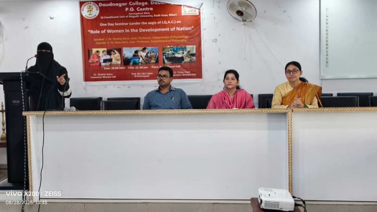 दाउदनगर. दाउदनगर कालेज के प्रेेमचंद हाल में राष्ट्र के विकास में महिलाओं की भूमिका विषय पर संगोष्ठी का आयोजन गुरुवार को महिला प्रकोष्ठ द्वारा किया गया. यह कार्यक्रम महाविद्यालय के प्राचार्य प्रो एमएस इस्लाम के मार्गदर्शन व डाॅ देव प्रकाश की अध्यक्षता में संपन्न हुआ. मुख्य वक्ता सहायक प्राध्यापक, मनोविज्ञान विभाग डाॅ शाहला बानो, सहायक प्राध्यापक, दर्शनशास्त्र विभाग डाॅ रोजी कांत ले साथ छात्रा खुशबू कुमारी, दुलारी कुमारी व सोनी कुमारी समेत कई में अपने विचार व्यक्त किया. डॉ शाहला बानो ने कहा कि आज महिलाएं समाज हर क्षेत्र में अग्रणी भूमिका निभा रही है. महिलाएं विज्ञान, तकनीक, राजनीति, प्रशासन, सेना तथा शिक्षा के उच्च पदों पर आसीन हैं और यह राष्ट्र की प्रगति के लिए अत्यंत शुभ संकेत है. डाॅ रोजी कांत ने वैदिक काल से लेकर वर्तमान तक महिला स्थिति का विश्लेषण प्रस्तुत करते हुए कहा कि वैदिक काल में महिलाएं शिक्षा, विद्या और निर्णय क्षमता में अत्यंत समृद्ध थीं, जबकि मध्यकाल में उनकी स्थिति विकृत हुई. आधुनिक काल में महिलाओं ने तमाम संघर्षों और तकरारों के बीच फिर से सम्मानजनक स्थान बनाया है, जो उनके साहस और संघर्षशीलता का प्रमाण है. अध्यक्षता करते हुए पीआरओ डाॅ देव प्रकाश ने कहा कि महिला सशक्तीकरण समाज और राष्ट्र के विकास की नींव है. बिना महिलाओं की सक्रिय भागीदारी के राष्ट्र का समग्र विकास असंभव है. हमें शिक्षा, रोजगार और समान अवसरों के माध्यम से महिलाओं को और सशक्त करना होगा. संचालन शाकिरा तबस्सुम ने किया व धन्यवाद ज्ञापन सौम्या राज ने किया. संगोष्ठी का समापन राष्ट्रगान के साथ हुआ.