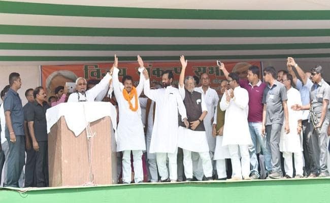 सीएम नीतीश कुमार, डिप्टी सीएमसुशील मोदी व लोजपा सुप्रीमो रामविलास पासवान ने एनडीए के जदयू प्रत्याशी गिरीधारी यादव के पक्ष में किया चुनावी सभा को संबोधित किया. इस अवसर पर जनसभा को संबोधित करते हुए मुख्यमंत्री नीतीशकुमार ने कहा कि कुछ लोग साथ में आने के लिए ताड़ी की बात कर रहे है. विपक्ष पर हमलावर होते हुए नीतीश कुमार ने कहा कि सत्ता में आकर कुछ लोग माल कमाना चाहते है. नीतीश कुमार ने कहा कि बिहार सरकार ने महिलाओं को आरक्षण दिया. केंद्र ने पटना मेट्रो के लिए सहायता दी है. उन्होंने कहा, हम न्याय के साथ विकास के रास्ते पर बिहार को आगे ले जा रहे है और यह प्रक्रिया आगे भी जारी रहेगी.