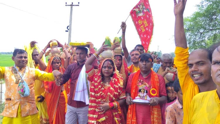 अमरपुर. प्रखंड क्षेत्र की भदरिया पंचायत अंतर्गत गंगापुर गढ़ैल में अवस्थित दुर्गा मंदिर में आयोजित श्रीमद्भागवत कथा सप्ताह ज्ञान यज्ञ को लेकर रविवार को भव्य कलश शोभा यात्रा निकाली गयी. मंदिर परिसर से निकली शोभायात्रा गंगापुर गढ़ैल, भदरिया, खंजरपुर, डुमरामा आदि गांवों से 551 महिलाएं एवं युवतियों की टोली मुड़कट्टा स्थान के समीप अवस्थित चांदन सीढ़ी छठ घाट पहुंची. जहां यजमान की भूमिका में मौजूद सुरेंद्र शर्मा व उनकी पत्नी नेहा शर्मा, निरंजन कुशवाहा व उनकी पत्नी नीतू कुमारी, किशोर कुमार व उनकी पत्नी अर्चना कुमारी, शिवनंदन महतो व उनकी पत्नी कल्पना देवी तथा प्रदीप कुमार व उनकी पत्नी रेणू देवी के नेतृत्व में पंडित अरविंद झा तथा अन्य पंडितों की टोलियों द्वारा वैदिक मंत्रोचार के साथ कलश में जलभराई अनुष्ठान को पूर्ण किया गया. जल भराई अनुष्ठान के पश्चात यजमान के नेतृत्व में महिला एवं युवतियों की टोली अपने सिर पर कलश रखकर पूरे गांव का भ्रमण करते हुए कथास्थल पर पहुंचे. मौके पर ग्रामीण सुरेंद्र सिंह ने बताया कि 23 सितंबर से 29 सितंबर तक श्रीधाम वृंदावन से आये कथावाचक श्रीमणी जी महाराज के द्वारा प्रतिदिन संध्या छह बजे से रात्री दस बजे तक भागवत कथा का आयोजन किया जायेगा. कलश शोभायात्रा में भानु प्रताप, सुभाष कुमार, सरगुण सिंह, बालेश्वर राय, अनिल सिंह, विलास सिंह, निलेश कुमार सहित सैकड़ों ग्रामीण शामिल थे.