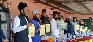 कटोरिया. कटोरिया बाजार के थाना रोड स्थित मदरसा तनवीरूल इस्लाम कटोरिया परिसर में एक कार्यक्रम का आयोजन हुआ. जिसमें जियारते हरमेन शरीफेन एवं हज व उमराह से संबंधित विस्तृत जानकारियां दी गयी. साथ ही उपस्थित लोगों से अपील किया गया कि जो भी सक्षम लोग हैं, वे जिंदगी में एक बार हज की यात्रा जरूर करें. यदि हज की यात्रा में सक्षम नहीं हैं, तो उमरा जरूर करें. इसको लेकर कटोरिया में एक कार्यालय का भी उदघाटन हुआ. जिसकी जिम्मेवारी मौलाना नसीर उद्यीन कादरी, मौलाना जुनेर रजा शाहिल व मो इस्तियाक आलम को सौंपी गयी. अब तक जिन लोगों ने उमरा में जाने का निर्णय लिया है, उनमें मो खुर्शीद आलम कठौन, मास्टर अब्दुल जब्बार व उनकी पत्नी ग्राम ढोंडियातरी, मास्टर इलियास कटोरिया व मो शमशेर कटोरिया शामिल हैं. उक्त लोगों को प्रो गुलजार शक्काफी व सैयद कामरान हसीब ने माल्यार्पण कर स्वागत किया. इस कार्यक्रम मेें मुफ्ती मो मुस्तकिम अहमद, मौलाना आबिद हुसैन, मौलाना मोजम्मिल, मौलाना मेराज, हाफीज मोनाजिर, हाफीज अब्दुल जब्बार, हाफीज सराफत, मौलाना अजमत, मौलाना मजहर कारी मुस्ताक, मौलाना खुर्शीद अनवर जियाई, मौलाना जाफर, हाफीज अलाउद्यीन, मौलाना मजहर, हबीब अंसारी, खुर्शीद अंसारी, मो सद्दाम अंसारी, मो इसराइल अंसारी, मो अनवर अंसारी