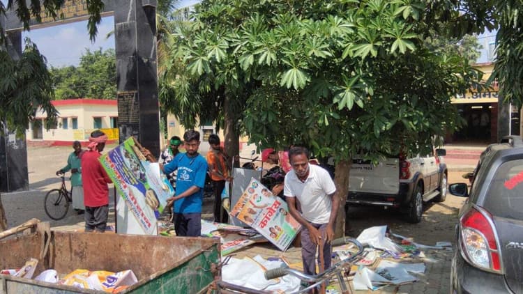 अमरपुर. बिहार विधानसभा चुनाव को लेकर आदर्श आचार संहिता लागू हो गयी है. इसका पालन करते हुए सहायक निर्वाची पदाधिकारी सह बीडीओ के नेतृत्व में शहर समेत विभिन्न चौक चौराहों पर लगे राजनीतिक दलों के बैनर व पोस्टर हटाने की कार्रवाई शुरू हो गयी है. नगर पंचायत के कर्मी सुबह से ही बैनर व पोस्टर हटाने के कार्य में जुट गये. कुछ जगहों पर राजनीतिक दलों के कार्यकर्ता स्वयं बैनर व पोस्टर हटाने के कार्य में जुट गये. सहायक निर्वाची पदाधिकारी सह बीडीओ ने बताया कि आगामी 13 अक्तूबर को चुनाव से संबंधित अधिसूचना जारी होगी. 20 तक संभावित प्रत्याशी अपना नामांकन प्रक्रिया पूरी करेंगे. 21 को स्क्रूटनी एवं 23 तक प्रत्याशी अपना नाम वापस ले सकेंगे. मतदान 11 नवंबर को होगा. 14 नवंबर को मतगणना होगी. उन्होंने बताया कि शांतिपूर्ण व निष्पक्ष तरीके से चुनाव संपन्न कराने को लेकर प्रशासनिक तैयारियां तेज हो गयी है.