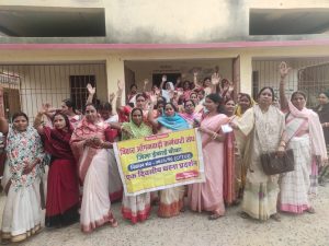 आंगनबाड़ी सेविकाओं ने मांगों को लेकर दिया धरना