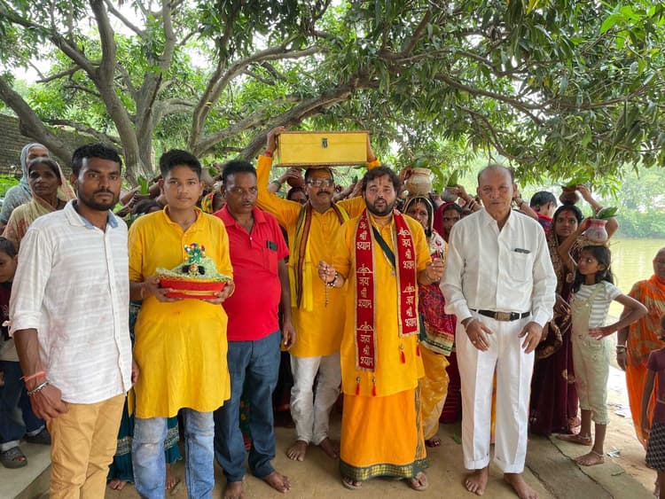 पंजवारा. सावन के पावन अवसर पर बिहार-झारखंड की सीमा पर स्थित खटनई गांव में श्रीमद् भागवत कथा सप्ताह ज्ञान यज्ञ का शुभारंभ बुधवार को भव्य कलश शोभायात्रा के साथ हुआ. सुप्रसिद्ध कष्टहरनाथ शिव मंदिर परिसर में हो रहे आयोजन को लेकर शिवगंगा से जल भरकर महिलाओं ने सिर पर कलश लेकर मंदिर परिसर तक शोभायात्रा निकाली. इस दौरान भक्ति गीतों और जयकारों से माहौल गुंजायमान रहा. आयोजन समिति के अनुसार 23 जुलाई से 29 जुलाई तक प्रतिदिन संध्या 6 बजे से रात 10 बजे तक श्रीमद् भागवत कथा का आयोजन होगा. कार्यक्रम में मुख्य यजमान जयप्रकाश नारायण साह एवं रीता देवी रहे. वहीं आयोजन में पप्पू साह, बालमुकुंद साह, विनय तिवारी, शैलेश चौबे, जय किशोर शाह, राजेश रामदास, पंचायत समिति सदस्य पंकज कुमार, शिवसेवक पासवान, सोमेश तिवारी, बिट्टू कुमार, रवि कुमार सहित बड़ी संख्या में श्रद्धालु एवं सहयोगी मौजूद रहे.