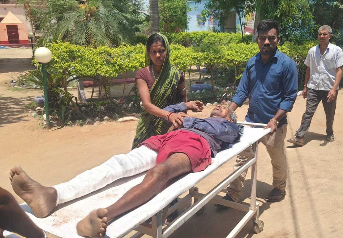 स्कूल वैन की टक्कर से बाइक चालक का टूटा पैर, देवघर रेफर