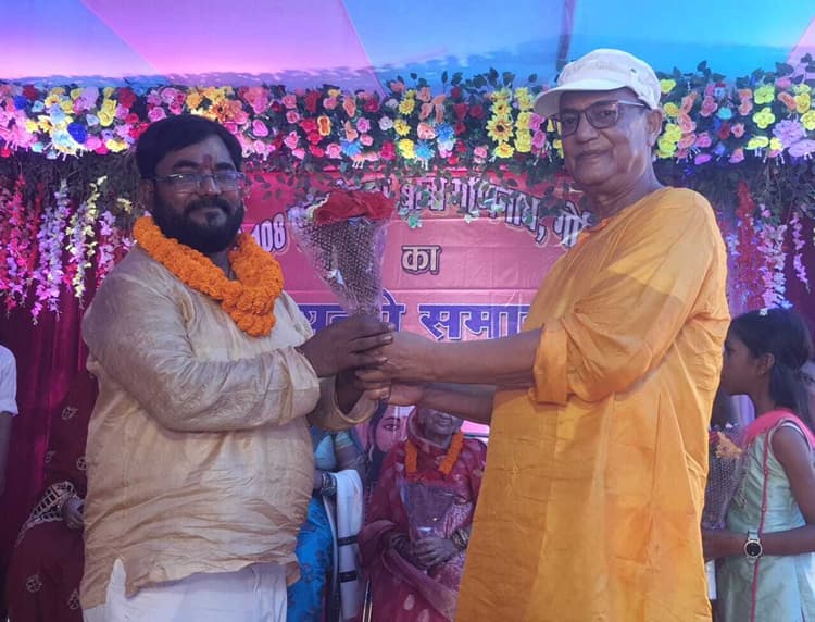 कटोरिया. कटोरिया बाजार के बेलौनी रोड में शनिवार को हलुवाई समाज के सौजन्य से कुल गुरु संत शिरोमणि बाबा गणिनाथ गोविंदजी महाराज की चतुर्थ जयंती समारोह का आयोजन हुआ. मुख्य अतिथि सह कटोरिया नगर पंचायत की चेयरमैन सपना शिवानी, पूर्व मुखिया आशा गुप्ता, जमीनदाता प्रेमलता देवी, वृद्धा समाजसेवी माखो देवी, वार्ड पार्षद उदय कुमार गुप्ता व चांदनी देवी ने संयुक्त रूप से फीता काटकर व दीप प्रज्वलित कर सांस्कृतिक कार्यक्रम मंच का विधिवत उद्घाटन किया. इससे पहले बाबा गणिनाथ धर्मशाला को लेकर चिह्नित भूमि पर पूजन, हवन व आरती के उपरांत अभ्युदय झंडोत्तोलन हुआ. जयंती समारोह को संबोधित करते हुए मुख्य अतिथि सह चेयरमैन सपना शिवानी ने कहा कि हमारा भारत देश व बिहार राज्य महापुरूषों, वीरों व धर्मप्रिय अनुयायियों की धरती रही है. संत शिरोमणि बाबा गणिनाथ ने धर्म व मानवता की रक्षा के लिए सेवा व धर्म भावना की राह अपनायी थी. साथ ही समाज में अपनापन व संस्कृति की रक्षा का संदेश दिया. चेयरमैन ने बेलौनी मुख्य सड़क से गणिनाथ धर्मशाला सह मंदिर निर्माण को लेकर चिह्नित भूमि तक पीसीसी निर्माण का भी भरोसा दिया, ताकि श्रद्धालुओं को किसी भी प्रकार की कोई असुविधा नहीं हो. पूर्व मुखिया प्रदीप कुमार गुप्ता ने कहा कि बाबा गणिनाथ जयंती समारोह का मुख्य उद्देश्य समाज में आपसी प्रेम, स्नेह, एकजुटता व भाईचारा मजबूत बनाए रखना है. उन्होंने धर्मशाला सह मंदिर निर्माण को लेकर जमीन दान देने वाले सभी दाताओं की काफी सराहना की. समाजसेवी पंकज गुप्ता ने कहा कि तीन सालों तक इंदिरा गार्डन में बाबा गणिनाथ की जयंती समारोह का आयोजन हुआ. बाबा की कृपा से जमीन उपलब्ध हो गया है. सभी श्रद्धालुओं से अनुरोध है कि धर्मशाला सह मंदिर निर्माण कार्य में बढ़-चढ़कर सहयोग करें. उपस्थित सभी अतिथियों को मंच पर बारी-बारी से माल्यार्पण कर बुके व अंग-वस्त्र भेंट कर सम्मानित किया गया. सांस्कृतिक कार्यक्रम के शुभारंभ में रीत गुप्ता ने स्वागत गीत की प्रस्तुति दी. फिर छोटी-छोटी बच्चियों द्वारा विभिन्न गीत, नृत्य व संगीत की बेहतरीन प्रस्तुति दी गयी. जिसमें पलक, कुहू, अनुप्रिया, दीक्षा, सगुन, कोमल, ओमया, दुर्गी, टुनटुन, परी, अनन्या, मिष्टी, संध्या, आकाशी, रिमझिम, अराध्या, आलिया आदि ने मनमोहक प्रस्तुति से खूब तालियां बटोरी. मंच का संचालन राजेश कुमार गुरु ने की. आयोजन को सफल बनाने में कटोरिया हलुवाई समाज के अध्यक्ष आर्यन राज, सचिव दिलीप साह, उपाध्यक्ष आलोक गुप्ता, कोषाध्यक्ष सोनू गुप्ता, सह कोषाध्यक्ष अशोक कुमार गुप्ता, अनिल गुप्ता, श्यामनारायण गुप्ता, रंजीत गुप्ता, नथुनी साह, शीतल गुप्ता, आशा कुमारी गुप्ता, बांकेलाल गुप्ता, टुनटुन गुप्ता, विनीता देवी, सरोज देवी आदि ने अ