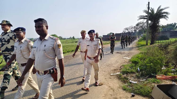 बेलहर. थाना क्षेत्र में विधानसभा चुनाव को लेकर बेलहर पुलिस ने नक्सल प्रभावित सीमावर्ती क्षेत्र में छापामारी व एरिया डोमिनेशन करते हुए फ्लैग मार्च किया. थानाध्यक्ष राजकुमार प्रसाद के नेतृत्व में बीएसएफ जवानों ने फ्लैग मार्च किया. जिसमें बेलहर -झाझा सीमा क्षेत्र के झुनका, बसमत्ता, चिरौता, कुशवाहा, छोटकीबसार, धनजोरवा, बदला, कुर्थिया, खासिया, धोधा, सौताडीह, लौढ़िया आदि दर्जनों जंगली पहाड़ी सीमावर्ती गांव में भय मुक्त एवं शांतिपूर्ण वातावरण में चुनाव कराने के उद्देश्य से फ्लैग मार्च किया गया. मौके पर बीएसएफ के इंस्पेक्टर मुल्ला राम, पुअनि आदित्य कुमार, संजय कुमार एवं अन्य पुलिस बल शामिल थे.
