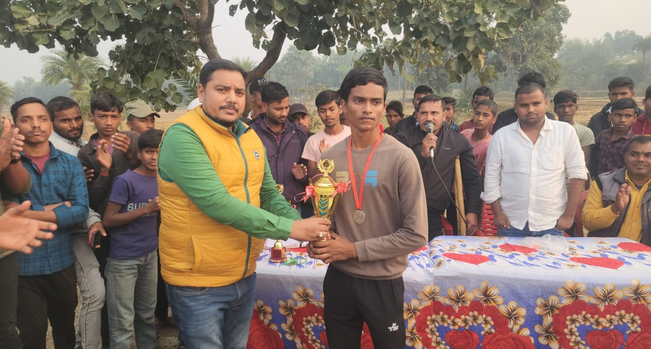 फुल्लीडुमर के बंगबरिया में आयोजित बीपीएल क्रिकेट टूर्नामेंट का फाइनल मुकाबला सोमवार को कुशाहा बनाम चोनहा टीम खेला गया. जिसमें चोनहा टीम के कप्तान अरबाज ने टॉस जीतकर पहले बल्लेबाजी का फैसला लिया. निर्धारित 12 ओवर में विकाश कुमार के शतकीय पारी से तीन विकेट खोकर 196 रन बनाये. जबावी पानी में उतरी कुशाहा की टीम 131 रन बनाकर कर सिमट गयी. इस प्रकार 65 रनों से चोनहा की टीम ने फाइनल मुकाबला जीत लिया. जिसमें मेन ऑफ द मैच चोनहा के विकाश कुमार व मेन ऑफ द सीरीज कुशाहा टीम के खिलाड़ी संतोष कुमार को दिया गया. मौके पर विजेता टीम को गुड्डू यादव ने ट्राफी देकर सम्मानित किया. जबकि उपविजेता टीम को युवा समाजसेवी विकास कुमार निराला ने ट्राफी देकर सम्मानित किया. युवा समाजसेवी ने कहा कि खेल में हार जीत होती है. सभी खिलाड़ियों ने बेहतर तरीके से इस खेल को खेला है. ऐसे ही आपलोग अनुशासन के साथ आगे बढ़ते रहे. उन्होने आयोजक सहित सभी खिलाड़ियों को शुभकामनाएं दी. मौके पर अंपायर मनोज कुमार यादव व सुकेश कुमार, कमेंटेटर अशोक कुमार यादव, कमेटी अध्यक्ष अमित कुमार, नीतीश कुमार, समाज सेवी नरेश यादव, रोहित कुमार, शंकर यादव सहित अन्य मौजूद थे.डिस्क्लेमर: यह प्रभात खबर समाचार पत्र की ऑटोमेटेड न्यूज फीड है. इसे प्रभात खबर डॉट कॉम की टीम ने संपादित नहीं किया है