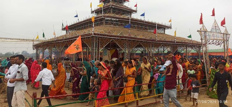 शंभुगंज. यज्ञ मंडप परिक्रमा करने वाले जीवों को सुख, शांति, दीघार्यु, आरोग्यता की प्राप्ति होती है. साथ ही काम, क्रोध, लोभ, मोह, ईष्या का क्षय होता हैं. उक्त बातें कामतपुर गांव में चल रहे 11 दिवसीय महारुद्र यज्ञ में यज्ञाचार्य मृत्युंजय झा ने कही. उन्होंने बताया कि यज्ञ हवन त्रेता, द्वापर, सतयुग से होते आ रहा हैं. बताया कि जो मनुष्य सच्चे मन से यज्ञ मंडप की 108 बार परिक्रमा करते हैं. उस जीव के अंदर से नकारात्मक ऊर्जा का नाश हो जाता है और सकारात्मक ऊर्जा का संचार होता हैं. सोमवार को यज्ञ में परिक्रमा करने वाले श्रद्धालुओं की भीड़ उमड़ पड़े. सुबह से मौसम अनुकूल होने के कारण श्रद्धालुओं का दिनभर यज्ञ परिसर में भीड़ लगी रही. यज्ञ मंडप के चारो तरफ ऊं नमः शिवाय के मंत्र गुंजायमान रहे. शाम में बाहर से आए कलाकारों द्वारा रात्रि जागरण का आयोजन किया गया. आयोजन समिति के सदस्यों ने बताया कि यज्ञ की पूर्णाहुति 29 अप्रैल को होगा.