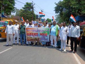 कांग्रेस जिलाध्यक्ष कंचना कुमारी सिंह के नेतृत्व में पार्टी कार्यकर्ताओं ने शनिवार को तिरंगा मार्च निकालते हुए जय हिंद पद यात्रा की.