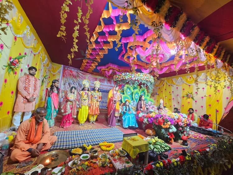 बौंसी. नगर पंचायत के बगडुम्मा गांव स्थित काली मंदिर परिसर में चल रहे नौ दिवसीय श्रीराम कथा एवं कालिका पूजन में बुधवार को सातवें दिन आस्था का अद्भुत संगम देखने को मिला. श्रद्धालुओं की भारी भीड़ कथा श्रवण के लिए उमड़ पड़ी, जिससे पूरा परिसर जय श्रीराम के गगनभेदी जयकारों से भक्तिमय हो उठा. कथावाचक ने भगवान श्रीराम के जीवन के अत्यंत भावपूर्ण प्रसंगों का वर्णन करते हुए अहिल्या उद्धार, गुरु विश्वामित्र के साथ मिथिला आगमन और जनकपुरी में प्रभु की मधुर लीलाओं के साथ सीता-राम विवाह का मनमोहक चित्रण किया इन प्रसंगों को सुनकर श्रद्धालु भाव-विभोर हो गए और कई की आंखें नम हो उठीं. आयोजन स्थल को भव्य पंडाल और आकर्षक सजावट से सजाया गया है, जो श्रद्धालुओं को विशेष रूप से आकर्षित कर रहा है. प्रतिदिन संध्या समय बड़ी संख्या में लोग कथा प्रवचन में शामिल हो रहे हैं. कथावाचिका गोस्वामी पीतांबरा के द्वारा कथा व्यास मंच से प्रतिदिन कई धार्मिक ज्ञान की बातें बताई जा रही है. यह धार्मिक आयोजन ग्रामीणों के सामूहिक सहयोग से सफलतापूर्वक संपन्न हो रहा है. कार्यक्रम में मुख्य यजमान के रूप में संतोष कुमार साह की उपस्थिति रही. वहीं नगर पंचायत अध्यक्ष कोमल भारती सहित क्षेत्र के कई गणमान्य लोग भी कथा में शामिल होकर धर्मलाभ अर्जित कर रहे हैं. मालूम हो कि इस आयोजन का उद्देश्य क्षेत्र में सुख-शांति और समृद्धि की कामना करना है. आकर्षक झांकियों और सुसज्जित मंच के कारण श्रद्धालुओं का उत्साह दिन-प्रतिदिन बढ़ता जा रहा है, जिससे पूरे क्षेत्र में भक्ति और आस्था का माहौल बना हुआ है.