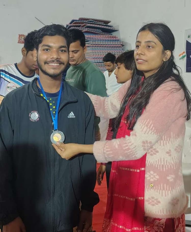 बांका. मधेपुरा के बीपी मंडल स्टेडियम में आयोजित राज्य स्तरीय प्रमंडलीय कराटे चैंपियनशिप में दिवेश आनंद ने अंडर 17 बालक वर्ग में 62 से 66 किलोग्राम वर्ग में ब्रांज मेडल जीता है. जिसके बाद अतिथियों के द्वारा सम्मानित करते हुए उज्ज्वल भविष्य की कामनाएं की गयी. मालूम हो दिवेश आनंद शहर के बाबुटोला निवासी बिजय कुमार यादव के बड़े पुत्र हैं. जो पढ़ने व कराटे में निपुण हैं. उनकी इस जीत पर शुभचिंतक सुधांशु कुमार सहित अन्य ने बधाई दी है.
