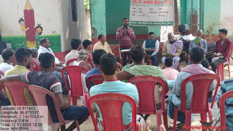 बांका. कृषि प्रौद्योगिकी प्रबंध अभिकरण (आत्मा) के तत्वावधान में कृषि जन चौपाल का आयोजन सदर प्रखंड क्षेत्र के बहेरा पंचायत अंतर्गत शिव मंदिर समीप आंगनवाड़ी केंद्र में आयोजित हुआ. चौपाल का विधिवत शुभारंभ पंचायत के मुखिया ऋषिकांत साह ने किया. मौके पर उन्होंने किसानों को सरकारी योजनाओं के संदर्भ में विस्तृत जानकारी लेते हुए लाभ लेने की अपील की. साथ ही कहा कि सरकार किसानों के हित में कई कल्याणकारी योजनाएं चला रही है. इसलिए हम सभी को जागरूक होकर इसका लाभ उठाना चाहिए. एटीएम कमलेश मौर्य ने रबी फसल को लेकर अनुदानित तौर पर बीज वितरण सहित अन्य कृषि से जुड़ी योजनाओं के संबंध में जानकारी दी. साथ ही इसके लाभ लेने के भी उपाय और प्रक्रिया की जानकारी दी. इसके अतिरिक्त इस चौपाल में फसल में लगने वाले रोग, कीट-व्याधि के संबंध में किसानों को जानकारी देते हुए इससे फसल की सुरक्षा और उचित उपचार को बताया. इस मौके पर किसान सलाहकार अविनाश कुमार, किसान महेश कापरी, योगेंद्र पंजियारा, सिकंदर कापरी सहित दर्जनों किसान मौजूद थे.