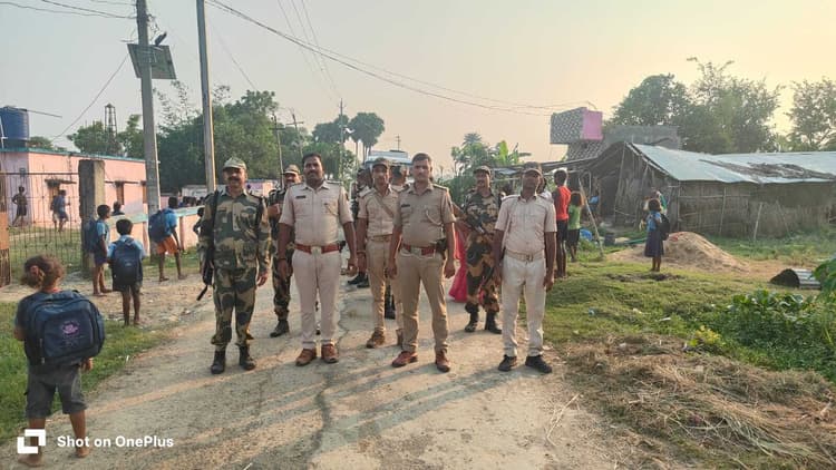बांका/रजौन. बिहार विधानसभा चुनाव 2025 को लेकर प्रशासन ने क्षेत्र में सुरक्षा व्यवस्था को मजबूत करने को लेकर शुक्रवार को सहायक थाना नवादा बाजार पुलिस ने बीएसएफ जवानों के साथ संयुक्त रूप से फ्लैग मार्च किया. थानाध्यक्ष सुजीत कुमार के नेतृत्व में फ्लैग मार्च में एसआइ शक्ति पासवान, एसआइ शंकर शर्मा, एसआई दिनेश कुमार पांडे सहित बीएसएफ के जवान बड़ी संख्या में मौजूद थे. फ्लैग मार्च थाना क्षेत्र के सकहारा, बलथरा, मलही, बिशनपुर, अड़संडा, बर्दियाचक और गोविंदपुर जैसे संवेदनशील इलाका होते हुए थाना पहुंची. फ्लैग मार्च के दौरान पुलिस अधिकारियों ने स्थानीय नागरिकों से बातचीत करते हुए निर्भीक होकर मतदान करने की अपील की.