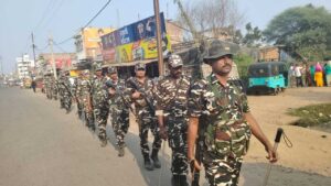 कटोरिया पुलिस ने अर्द्धसैनिक बलों के साथ बाजार में किया फ्लैग-मार्च