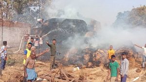 पुआल की टाल में आग लगने से चालीस हजार का पुआल जलकर राख