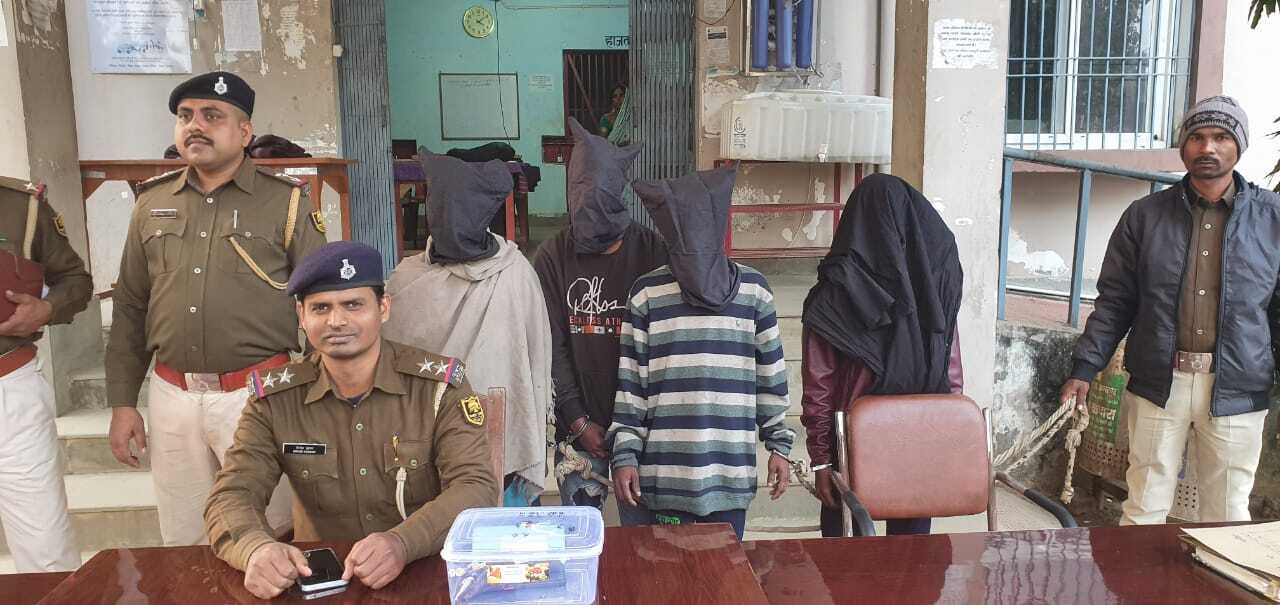 अमरपुर. अमरपुर पुलिस ने शहर के बस स्टैंड स्थित बजरंग वली मंदिर के समीप एक कट्टा, छह कारतूस, एक बाइक व दो मोबाइल के साथ चार युवकों को गिरफ्तार किया है. गिरफ्तार युवक शहर के काशीखंड मोहल्ला निवासी शनिचर मुसहर, राहुल मुसहर, ढकलू मुसहर व किसनिया मुसहर बताया जा रहा है. थानाध्यक्ष पंकज कुमार झा ने बताया कि 17 दिसंबर को उन्हें गुप्त सूचना मिली कि शहर के बस स्टैंड पर स्थित बजरंगबली मंदिर के समीप संदिग्ध अवस्था में चार युवक मौजूद है. सूचना मिलते ही उक्त स्थल पर छापामारी अभियान चलाया गया. पुलिस वाहन को देखकर उक्त सभी युवक भागने लगे. जिसे खदेड़ कर पुलिस ने पकड़ लिया. जांच के दौरान शनिचर मुसहर के पास से एक कट्टा तथा छह कारतूस बरामद हुआ. मौके से युवकों को गिरफ्तार करते हुए उनके पास मौजूद बाइक व दो मोबाइल को जब्त कर लिया गया. पूछताछ के दौरान युवकों ने शहर में आये दिन हो रही चोरी की घटना को लेकर कई अहम जानकारी दी. कई चोरी की घटना में अपनी संलिप्तता स्वीकार की. गिरफ्तार युवकों की निशानदेही पर चोरी की गयी टीवी व कुछ बर्तन भी बरामद हुआ है. थानाध्यक्ष ने बताया कि गिरफ्तार युवकों से मिली जाकारी पर गहनता से जांच की जा रही है. फिलवक्त गिरफ्तार युवकों के विरुद्ध प्राथमिकी दर्ज कर चारों को न्यायिक हिरासत में बांका जेल भेज दिया.