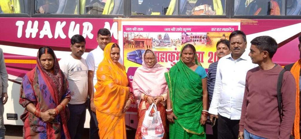 पंजवारा संकट मोचन चौंक से रविवार सुबह 45 यात्रियों का जत्था बस के जरिये संगम नगरी प्रयागराज के लिए प्रस्थान किया