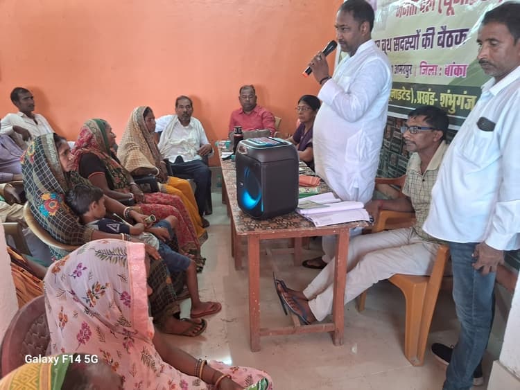 शंभुगंज प्रखंड क्षेत्र की करसोप पंचायत में सोमवार को जदयू प्रदेश के निर्देश पर पंचायत अध्यक्ष दिनेश मंडल की अध्यक्षता में पंचस्तरीय कार्यक्रम का आयोजन किया गया. बैठक में अमरपुर विधानसभा प्रभारी सुमीत कुमार सिंह, कार्यक्रम प्रभारी सह प्रदेश उपाध्यक्ष डा. प्रमिला प्रजापति, प्रखंड जदयू अध्यक्ष बालेश्वर प्रसाद सिंह, पंचायत अध्यक्ष, बुथ कमेटी के कार्यकर्ता उपस्थित थे. कार्यक्रम में सरकार के 20 वर्ष के उपलब्धि को जन- जन तक पहुंचाने का संकल्प लिया गया. पार्टी के प्रदेश पदाधिकारी द्वारा बताया गया कि माननीय मुख्यमंत्री नीतीश कुमार के कार्यकाल में मंदिरों, कब्रिस्तानों का घेराबंदी, महिलाओं को आरक्षण, बच्चों को पढ़ने के लिये नये- नये संस्थान, स्कूल, स्वास्थ्य सेवा सुदृढ किया गया, क्षेत्र में बिजली का समस्या दूर करने, महिला सशक्तिकरण योजना सहित अन्य योजनाओं को चलाया गया. बुथ जीतो, चुनाव जीतो का मंत्र दिया गया. वहीं पार्टी के संगठन को मजबूत करने एवं फिर एक बार नीतीश सरकार पर चर्चा किया गया. इस मौके पर प्रखंड जदयू अध्यक्ष बालेश्वर प्रसाद सिंह, प्रखंड महिला प्रकोष्ठ अध्यक्ष शांति देवी, पचायत अध्यक्ष दिनेश मंडल, शांति शरण, बुलबुल देवी, सुषमा देवी, नवल मंडल, रणजीत राम, अनिल कुमार सिंह, रणजीत कुमार राणा, मो. खुर्शीद सहित सैकड़ों कार्यकर्ता मौजूद थे.डिस्क्लेमर: यह प्रभात खबर समाचार पत्र की ऑटोमेटेड न्यूज फीड है. इसे प्रभात खबर डॉट कॉम की टीम ने संपादित नहीं किया है