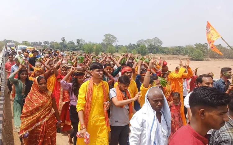 पंजवारा. थाना क्षेत्र के गोविंदपुर टोला कुम्हराडीह में निर्मित मंदिर में संकटमोचन हनुमान जी की मूर्ति के स्थापना को लेकर शुक्रवार को भव्य कलश शोभायात्रा निकाली गयी. इस अवसर पर सुबह ग्रामीणों ने मंदार पर्वत के तलहटी स्थित पापहारिणी सरोवर पहुंच वहां से विधिवत पूजन के बाद कलश में जल भर कर कलश शोभायात्रा निकाली. शोभायात्रा में शामिल महिला श्रद्धालु भक्ति भजनों पर नाचते गाते हुए सबलपुर व विक्रमपुर मोड़ के रास्ते कुम्हराडीह पहुंचे. जहां गांव का भ्रमण के बाद मंदिर परिसर में कलश रख कलश शोभायात्रा समाप्त हुई. इसके बाद गुरुधाम बौंसी के पंडितों की अगुवाई में मंदिर में हनुमान की मूर्ति की प्राण प्रतिष्ठा का अनुष्ठान आरंभ हुआ. इस अवसर पर अखंड रामधुन का आयोजन किया जा रहा है. आयोजन को लेकर समस्त ग्रामवासी सक्रिय हैं.
