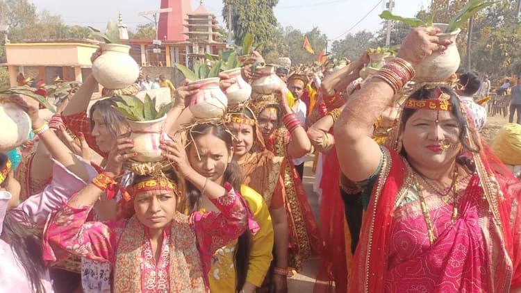 मोहदीनगर में शिवलिंग की प्राण प्रतिष्ठा को लेकर निकाली गयी कलश शोभायात्रा