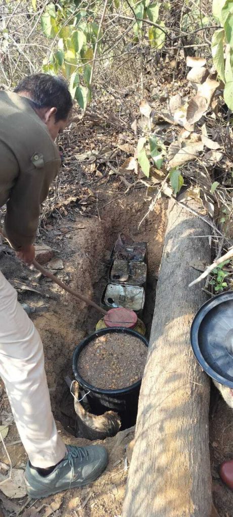 दुधघटिया जंगल से महुआ शराब बरामद, भट्ठी को किया ध्वस्त