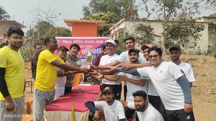 पंजवारा. बिहार पुलिस सप्ताह के तहत रविवार को पंजवारा थाना द्वारा क्षेत्र के सबलपुर खेल मैदान में पुलिस व पब्लिक के बीच मैत्री क्रिकेट मैच का आयोजन किया गया. पुलिस टीम में पंजवारा थानाध्यक्ष मनीष कुमार की अगुवाई में पंजवारा के युवा क्रिकेटरों को टीम में शामिल किया गया था. जबकि पब्लिक एकादश में सबलपुर पंचायत के मुखिया निखिल बहादुर सिंह की कप्तानी में सबलपुर के युवा खिलाड़ी खेल रहे थे. पुलिस एकादश के कप्तान पंजवारा थानाध्यक्ष मनीष कुमार ने टॉस जीतकर पहले गेंदबाजी का फैसला लिया. पहले बल्लेबाजी करने उतरी पब्लिक इलेवन टीम ने निर्धारित 12 ओवरों में 121 रन बनाए. जवाब में बल्लेबाजी करने उतरी पुलिस एकादश के बल्लेबाज निर्धारित 12 ओवरों में 111 रन ही बना पायी. मैन ऑफ द मैच का का पुरस्कार मैच में ऑल राउंडर प्रदर्शन करने वाले सबलपुर के मोनू सिंह को दिया गया. वहीं विजेता टीम को चमचमाती ट्रॉफी प्रदान की गयी. मैच में अंपायरिंग रासमोहन ठाकुर ने की.