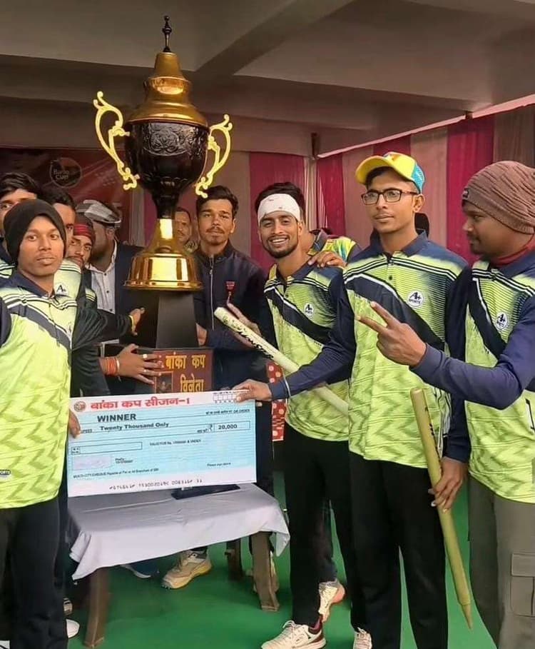 शहर के आरएमके ग्राउंड पर गुरुवार को बांका कप टेनिस क्रिकेट प्रतियोगिता सीजन वन 2025 का फाइनल मुकाबला रीतेश इलेवन बाराहाट बनाम आरएमके क्रिकेट क्लब बांका खेला गया. जिसमें आरएमके क्लब बांका टीम के कप्तान मनीष यादव ने टॉस जीत के पहले बल्लेबाजी करने का निर्णय लिया. और 12 ओवर में 6 विकेट के नुकसान पर 122 रन बनाये. टीम के बल्लेबाज प्रियांशु आनंद ने 16 बॉल में 3 छक्का व 3 चौका की मदद से 39 रन बनाया. जवाबी पारी में उतरी रितेश इलेवन की टीम 12 ओवर में 9 विकेट के नुकसान पर 93 रनों पर ही सिमट गयी. जिसमें टीम के गोलू जेडी ने 20 रनों का योगदान दिया. इस प्रकार यह फाइनल मुकाबला आरएमके क्लब बांका ने 29 रनों से जीत लिया. मैच समाप्ति के बाद विजेता को 20 हजार व उपविजेता टीम को 10 हजार राशि व कप से सम्मानित किया गया. जबकि मैन ऑफ द मैच प्रियांशु आनंद, मैन ऑप द सीरीज मनीष यादव, बेस्ट फिल्डर मदन कुमार को सम्मानित किया गया. मौके पर पूर्व सभापति संतोष सिंह, महादेव इन्कलेव अधिकारी, आरके मिशन के डायरेक्टर सत्येंद्र सिंह, अमित झा, धर्मेंद्र महतो, राकेश कुमार, चंदन कुमार, ललन कुमार, ऋषव मिश्रा, राजेश कुमार, ऋतिक मिश्रा, संतोष कुमार, सुधांशु कुमार सहित अन्य खेलप्रेमी मौजूद थे.डिस्क्लेमर: यह प्रभात खबर समाचार पत्र की ऑटोमेटेड न्यूज फीड है. इसे प्रभात खबर डॉट कॉम की टीम ने संपादित नहीं किया है