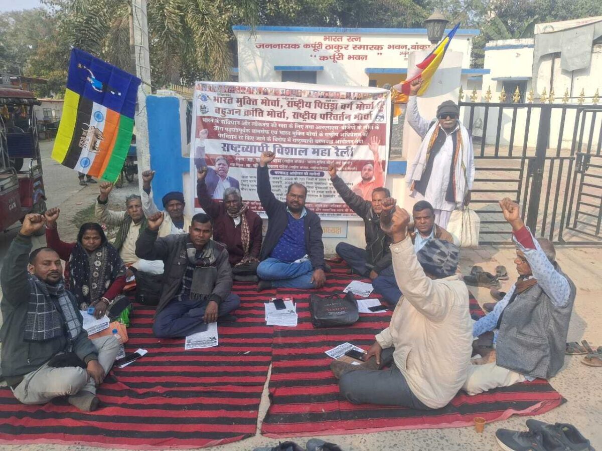 बांकाः भारत मुक्ति मोर्चा, बहुजन क्रांति मोर्चा, राष्ट्रीय पिछड़ा वर्ग मोर्चा व राष्ट्रीय परिवर्तन मोर्चा के तत्वावधान में एक दिवसीय धरना प्रदर्शन का आयोजन समाहरणालय समीप कर्पूरी स्माकर के पास गुरुवार को किया गया. वक्ताओं ने कहा कि बामसेफ का 42वां एवं भारत मुक्ति मोर्चा का 15 वां राष्ट्रीय अधिवेशन बालियात्रा लोवर ग्राउंड कटक उड़ीसा में विगत वर्ष 26 दिसंबर से 30 दिसंबर तक होना था. इसकी अनुमति भी वहां के जिला प्रशासन से दो माह पूर्व प्राप्त हो चुका था. अधिवेशन शुरु होने के समय ही आरएसएस व बीजेपी के दबाव में आकर ग्राउंड का परमिशन रद्द कर दिया गया. यह संविधान में दिये गये अधिकारों का उल्लंघन है. हाईकोर्ट में गुहार लगाने के बाद भी कोई न्याय नहीं मिला. इसीलिए यह धरना दिया गया है. यह अधिवेशन ओबीसी की जाति आधारित जनगणना क्यों जरुरी है व मशीन के विरोध के संबंध में विषय पर चर्चा के लिए रखी गयी थी. इसलिए संगठन द्वारा चार चरणों का आंदोलन घोषित किया गया है. 15 जनवरी को सभी जिला मुख्यालय में धरना दिया जा रहा है, जिसमें बांका यूनिट भी समर्थन दे रहा है. तीसरा चरण का आंदोलन 22 जनवरी व चौथा चरण का आंदोलन 22 फरवरी को किया जायेगा. इस दौरान नागपुर में आरएसएस मुख्यालय का घेराव किया जायेगा. इस मौके पर भारत मुक्ति मोर्चा जिलाध्यक्ष विश्वानंद गिर, दयानंद बौद्ध, रामचंद्र दास रुपनारायण बौद्ध, प्रमोद कुमार दास, तुलसी दास, नंदिन देवी, सूर्यनारायण दास, तेतर दास, प्रमोद कुमार दास, सत्यजीत कुमार, विरेंद्र दास, सरयू दास सहित दर्जनों कार्यकर्ता मौजूद थे.