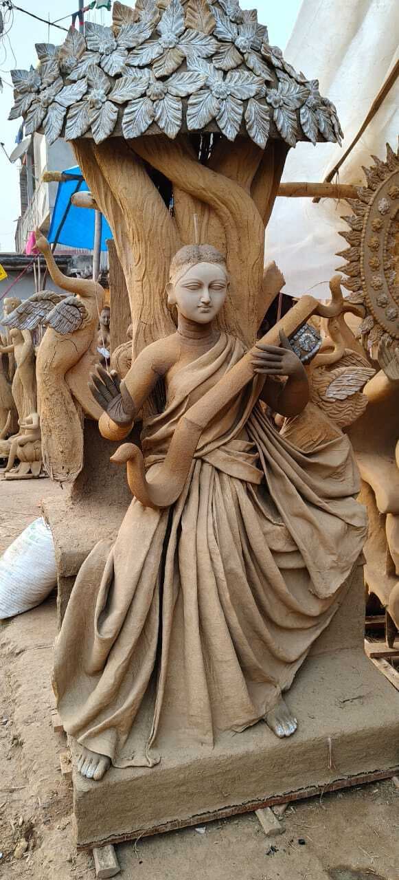 सरस्वती प्रतिमा को अंतिम रूप देने में जुटे हैं कलाकार