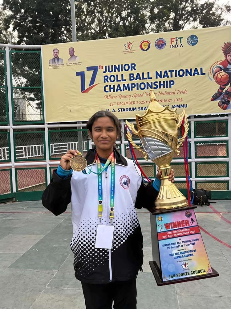 अमरपुर. नगर पंचायत की होनहार बेटी सिमरन सक्सेना ने खेल जगत में एक नया कीर्तिमान स्थापित करते हुए जिला व राज्य को गौरवान्वित किया है. सिमरन ने असम की टीम से खेलते हुए 17वीं जूनियर नेशनल रोल बॉल चैंपियनशिप 2025 में शानदार प्रदर्शन किया और टीम की जीत में अहम भूमिका निभायी. मालूम हो कि यह प्रतिष्ठित राष्ट्रीय प्रतियोगिता गत 29 दिसंबर 2025 से एक जनवरी 2026 तक स्केटिंग रिंक, एमए स्टेडियम, जम्मू में आयोजित की गयी थी. जिसका आयोजन रोल बॉल एसोसिएशन ऑफ जम्मू एंड कश्मीर के तत्वावधान में हुआ. देश भर से आई मजबूत टीमों के बीच सिमरन का प्रदर्शन काबिल-ए-तारीफ रहा. जहां उन्होंने अपने कौशल, फुर्ती और रणनीतिक खेल से दर्शकों और चयनकर्ताओं का ध्यान अपनी ओर खींचा. सिमरन सक्सेना अमरपुर निवासी सोनू कुमार सक्सेना की पुत्री हैं. उनकी इस सफलता के पीछे वर्षों की कड़ी मेहनत, अनुशासन और खेल के प्रति अटूट समर्पण है. सीमित संसाधनों के बावजूद सिमरन ने अपने जुनून को कभी कमजोर नहीं पड़ने दिया और निरंतर अभ्यास के बल पर राष्ट्रीय स्तर तक अपनी पहचान बनायी. उनकी इस सफलता पर क्षेत्र में खुशी की लहर है. स्थानीय लोगों, खेल प्रेमियों एवं जनप्रतिनिधियों ने उन्हें बधाई देते हुए इसे अमरपुर के लिए गौरव का क्षण बताया है. सिमरन आज उन बेटियों के लिए प्रेरणा बन गयी हैं, जो खेल के क्षेत्र में आगे बढ़ने का सपना देखती हैं.