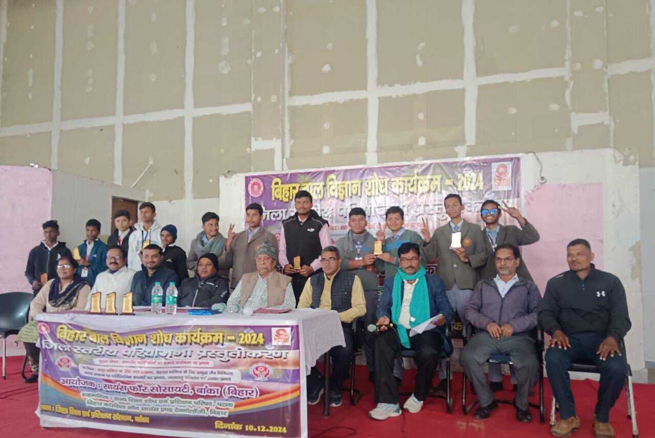 प्रतिभागियों का मंगलवार को जिला स्तरीय बिहार बाल विज्ञान शोध कार्यक्रम में किया गया चयन20 से 22 दिसंबर को जहानाबाद में आयोजित राज्य स्तरीय प्रतियोगिता में लेंगे हिस्साबांका. साइंस फाॅर सोसाइटी बांका के तत्वावधान में मंगलवार को बिहार बाल विज्ञान शोध कार्यक्रम का आयोजन किया गया गया. डायट में आयोजित इस कार्यक्रम का शुभारंभ निर्णायक मंडली के वरिष्ठ सदस्य डाॅ. एसकेपी सिन्हा ने किया. मौके पर उन्होंने सभी बाल विज्ञानी को बेहतर प्रदर्शन और समाज के लिए नये-नये प्रयोग के लिए प्रोत्साहित किया. कार्यक्रम के दौरान मुख्य विषय मानवीय गतिविधियों का हमारे पर्यावरण पर प्रभाव का प्रस्तुतिकरण किया गया. जिले के विभिन्न छात्र-छात्राओं ने उप विषय सतत भविष्य के लिए जल संरक्षण, बेहतर भविष्य के लिए समृद्ध जैव विविधता, फसल उत्पादन पर पारिस्थितिक कारकों का प्रभाव व जलवायु परिवर्तन व उसका प्रभाव पर प्रस्तुतिकरण दिया. प्रतिभागियों के लाये गये प्रोजेक्ट का मूल्यांकन करते हुए निर्णायक मंडली ने परिणाम जारी किया. कुल छह बाल विज्ञानी को बिहार राज्य विज्ञान शोध कार्यक्रम के लिए चयनित किया गया. सभी प्रतिभागी 20 से 22 दिसंबर को जहानाबाद में आयोजित कार्यक्रम में हिस्सा लेंगे. इसके अतिरिक्त एक अन्य प्रतियोगिता के दौरान गणित, विज्ञान व पर्यावरण प्रदर्शनी के भी पांच बाल विज्ञानी का चयन किया गया, जिसमें आर्या घोष, पूजा कुमारी, निधि घोष, आदम्य चौधरी व अमन कुमारी शामिल थे. इनका पहले राज्य स्तर पर स्क्रूटनी किया जायेगा और उसके बाद अगले चरण की प्रतियोगिता में प्रवेश दिया जायेगा. डाॅ. रमेश कुमार झा, जिला समन्वयक अरुण कुमार अमन, व प्रांतीय महासचिव दीपक कुमार ने प्रतिभागियों का मार्गदर्शन किया. निर्णायक मंडल में सदस्य के रूप में संतोष कुमार तिवारी, डाॅ. राजेंद्र कुमार, डाॅ. राहुल कश्यप, दामोदर पंडित, डाॅ. नवल घोष, रामदेव सिंह व अनामिका कुमारी शामिल थे.
