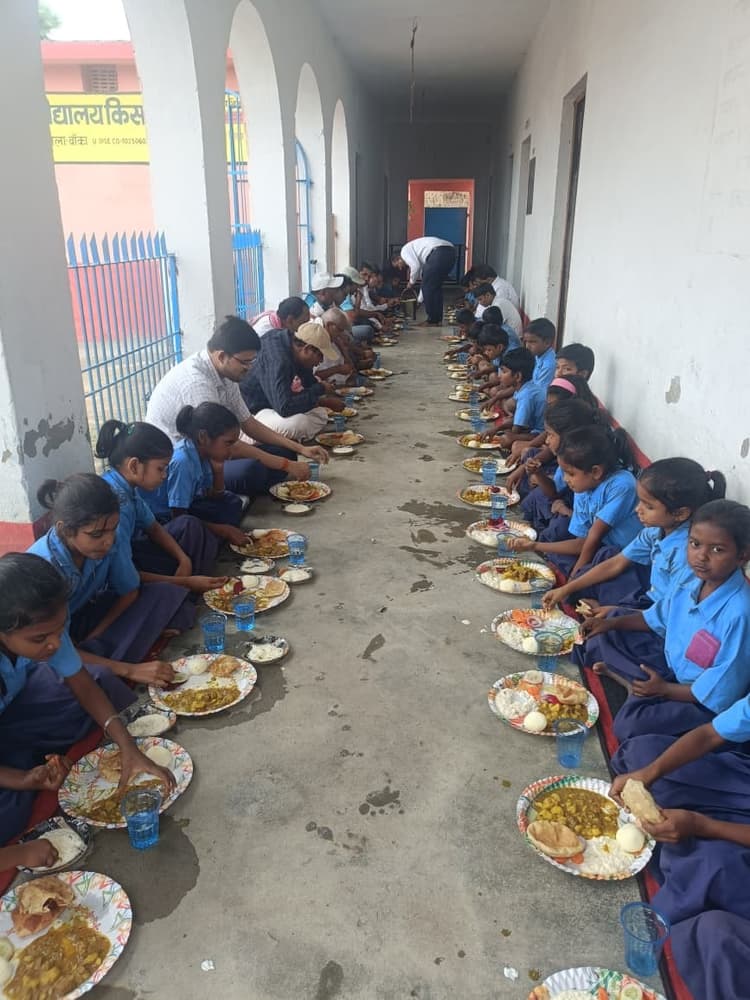 फोटो 15 बांका 62 जिला कार्यक्रम पदाधिकारी के साथ भोजन करते विद्यार्थी. बौंसी. प्रखंड क्षेत्र के नवसृजित प्राथमिक विद्यालय किशनपुर में मंगलवार को तिथि भोजन कार्यक्रम में छात्र-छात्राओं ने लजीज भोजन का आनंद लिया. कार्यक्रम में मध्यान भोजन योजना के जिला कार्यक्रम पदाधिकारी राजकुमार राजू, प्रखंड शिक्षा पदाधिकारी शैलेंद्र कुमार विश्वास, मध्यान भोजन योजना के जिला साधन सेवी उदय कांत झा सहित अन्य मौजूद थे. मौके पर जिला कार्यक्रम पदाधिकारी ने बताया कि तिथि भोजन योजना से बच्चों को जहां बेहतर और लजीज भोजन मिल पाता है. वही बच्चों के साथ बैठकर भोजन करने का आनंद ही कुछ और है .उन्होंने आम लोगों से भी अपील की है कि सरकार की इस योजना के तहत बच्चों के बीच अपने जीवन के खास तिथि को सेलिब्रेट करने का काम करें. कार्यक्रम में विद्यालय परिवार की ओर से बच्चों के लिए कचौड़ी,सब्जी ,खीर, रसगुल्ला ,सलाद, पापड़ सहित अन्य लजीज व्यंजन के इंतजाम किए गए थे. कार्यक्रम से जहां बच्चों में काफी उमंग देखा गया वहीं उपस्थित जनप्रतिनिधि एवं ग्रामीणों ने इस कार्यक्रम की सराहना की. मालूम हो की इसके पूर्व भी प्रखंड के कई विद्यालयों में मध्यान भोजन योजना के जिला साधन सेवी के नेतृत्व में तिथि भोजन का आयोजन किया गया है. इस मौके पर मुख्य रूप से बभनगामा पंचायत के पूर्व मुखिया अश्वनी पांडे , शिक्षाविद शिवेंद्र कृष्णा पांडे ,मध्यान भोजन योजना के अंकित कुमार मिश्रा सहित अन्य मौजूद थे. बताया जाता है कि विद्यालय के 74 बच्चों ने भोजन का आनंद लिया.