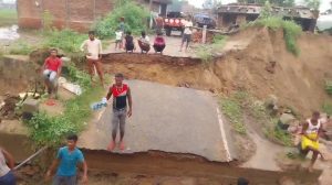 सहरोय गोयड़ा गांव के पास पुलिया टुटकर हुआ ध्वस्त, आवागमन ठप