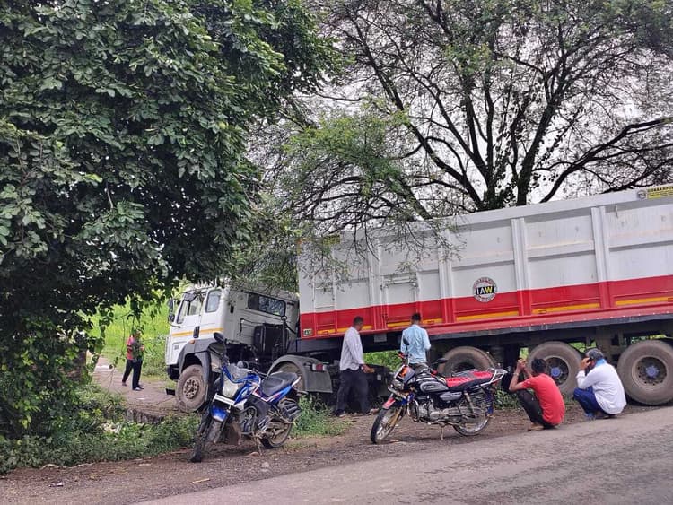 बौंसी. बौंसी-भागलपुर नेशनल हाईवे पर शनिवार अहले सुबह एक हाइवा दुर्घटनाग्रस्त हो गया. हालांकि, हादसे में हाइवा का चालक व खलासी बाल-बाल बच गये. जानकारी के अनुसार, मुंगेर जिला के कौशलपुर गांव निवासी हाइवा चालक तारिणी मंडल झारखंड के रामपुरहाट गिट्टी लाने जा रहा था. यह वाहन बेगूसराय निवासी अनीश पांडे का बताया जा रहा है. हादसा उस समय हुआ जब बौंसी बाजार से पहले पाठक पुल के समीप सामने से आ रही एक पिकअप गाड़ी को बचाने के प्रयास में हाइवा नियंत्रण खो बैठा. वाहन चिकनी जोर में पलटते-पलटते बच गया, लेकिन उसका अगला हिस्सा डॉक्टर जितेंद्र नाथ द्वारा बनाए गए पुलिया पर चढ़ गया. इस दौरान एक विद्युत खंभा व पुलिया क्षतिग्रस्त हो गया. घटना के बाद किरान मंगा कर हाइवा को सड़क से हटाया गया. इस बीच कुछ देर के लिए मुख्य मार्ग पर जाम की स्थिति उत्पन्न हो गयी थी. विद्युत विभाग के जूनियर इंजीनियर राहुल कुमार ने बताया कि विद्युत खंभा टूटने के कारण वाहन मालिक से उचित मुआवजा लिया जायेगा. पुलिस मामले की जांच कर रही है. वहीं घटना के बाद पिकअप वाहन का चालक मौके से फरार हो गया.