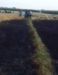 लौगांय बहियार में विद्युत प्रवाहित तार टूटा, दो एकड़ गेहूं की फसल जलकर राख