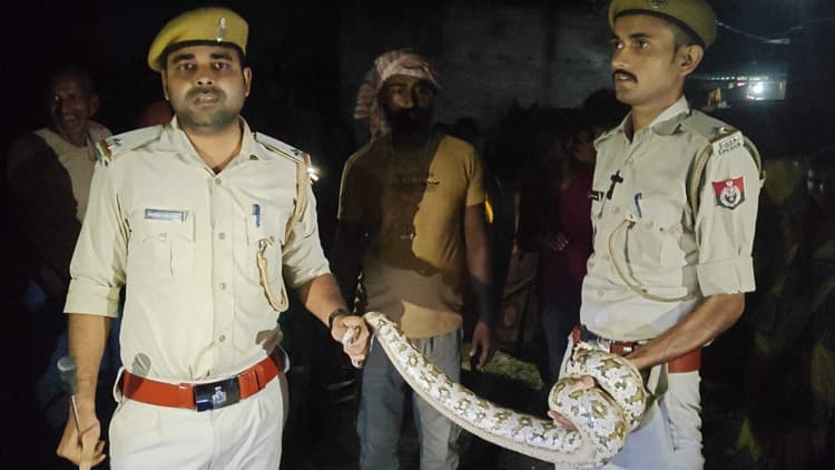 बौंसी. नगर पंचायत के बागडुमा गांव के एक घर से वन विभाग की टीम ने 06 फीट के अजगर को रेस्क्यू किया है. जानकारी देते हुए फॉरेस्टर विद्यासागर ने बताया कि शुक्रवार की देर रात गांव के रमेश कुमार के घर में अजगर को देखा गया. मौके पर ग्रामीणों की भारी भीड़ इकट्ठी हो गयी. सूचना मिलते ही वन विभाग की रेस्क्यू टीम मौके पर पहुंची और करीब आधे घंटे के प्रयास के बाद अजगर को सुरक्षित पकड़ लिया गया. टीम के सदस्यों ने बताया कि यह लगभग 6 फीट लंबा था और करीब 15 किलो का है. फॉरेस्टर ने बताया कि अजगर पूरी तरह स्वस्थ है. रेस्क्यू के बाद अजगर को रतनसार जंगल में सुरक्षित रूप से छोड़ दिया गया. अधिकारियों का कहना है कि बारिश के मौसम के बाद ऐसे सरीसृप अक्सर आवासीय इलाकों की ओर भटक आते हैं, इसलिए लोगों को सतर्क रहने की जरूरत है. टीम में वनरक्षक गौरव कुमार गिरी, अमित कुमार, विवेक कुमार, सुधीर कुमार सहित अन्य शामिल रहे.