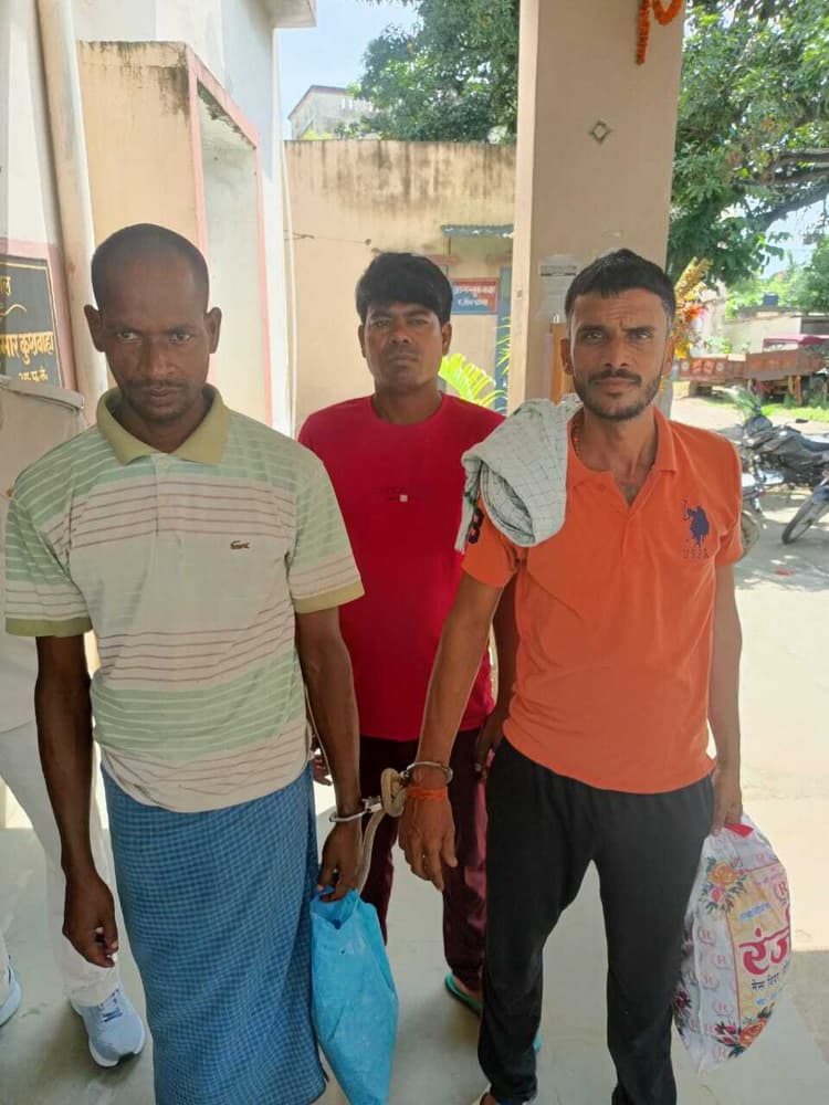 बांका/रजौन. रजौन पुलिस ने तीन अलग-अलग मामलों में कार्रवाई करते हुए तीन लोगों को गिरफ्तार कर न्यायिक हिरासत में बांका जेल भेज दिया. पुलिस ने शराब कारोबार में लिप्त एक युवक पुनसिया निवासी ऋषि कुमार यादव, पिता सत्यनारायण यादव को गिरफ्तार किया है. पुलिस ने उसके पास से दो लीटर महुआ शराब, 375 एमएल की दो बोतल विदेशी शराब बरामद की है. साथ ही मौके से एक मोटरसाइकिल भी जब्त किया है. वहीं पुलिस ने लंबे समय से फरार चल रहे एनबीडब्ल्यू वारंटी राजू दास को गिरफ्तार कर न्यायिक हिरासत में बांका भेज दिया है. वहीं पुलिस ने बैंगा टोला पुनसिया बस्ती निवासी सुभाष यादव, पिता स्व. कमली यादव को भी गिरफ्तार कर न्यायिक हिरासत में बांका भेज दिया.