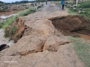 गिधोड़ा से शौगनी जाने वाली सड़क पर पुलिया धंसने से यातायात हुआ बाधित