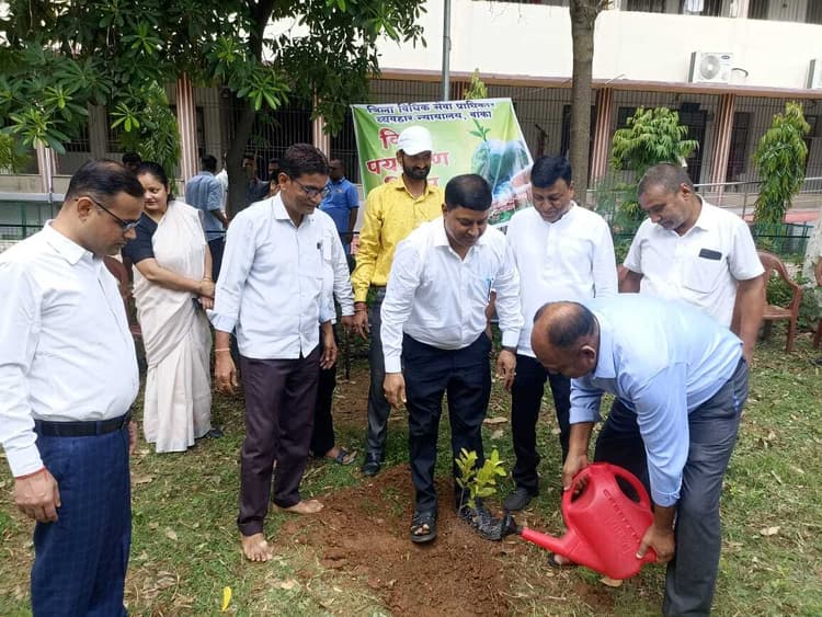 बांका. व्यवहार न्यायालय परिसर में गुरुवार को विश्व पर्यावरण दिवस के अवसर पर जिला विधिक सेवा प्राधिकार के तत्वाधान में पौधरोपण कार्यक्रम आयोजित हुआ. इस दौरान प्रधान जिला एवं सत्र न्यायाधीश सह अध्यक्ष जिला विधिक सेवा प्राधिकार निखिलेश त्रिपाठी, डीएलएसए सचिव राजेश कुमार सिंह, एडीजे वन अभिषेक कुमार भान, सीजेएम शैलेंद्र कुमार, मुन्सिफ प्रदुमन कुमार, प्रथम श्रेणी न्यायिक दंडाधिकारी विजय कुमार, क्षितिज अनुपम, मनोज कुमार, उमा कुमारी, नवनीत कुमार, जेजेबी नीलम कुमारी, सब जज तृतीय अविनाश कुमार आदि के द्वारा विभिन्न प्रकार के फलदार व छायादार पौधे लगाये गये. मौके पर जिला जज ने कहा कि पौधरोपण से ही पर्यावरण को संतुलित किया जा सकता है. प्रत्येक लोगों को कम से कम एक पौधा जरूर लगाना चाहिए. साथ ही जब तक पौधा पेड़ का रूप नहीं ले लेता है तब तक उसकी देखभाल भी आवश्यक है. इस मौके पर कोर्ट प्रबंधक प्रेमजीत शेखर व कर्मी कृष्ण कुमार पांडेय, संजय कुमार सिंह, संदीप कुमार सहित अन्य मौजूद थे.