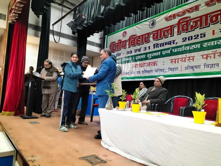 बांका. साइंस फोर सोसाइटी बिहार राज्य शिक्षा शोध प्रशिक्षण परिषद पटना के संयुक्त तत्वावधान में द्वितीय राज्य स्तरीय बिहार बाल विज्ञान शोध कार्यक्रम 2025 का आयोजन कृष्ण विज्ञान केंद्र पटना में संपन्न हुआ. इस संबंध में साइंस फोर सोसाइटी के जिला समन्वयक अरुण कुमार अमन ने बताया कि गत 30 दिसंबर को पटना में राज्य स्तरीय प्रतियोगिता आयोजित हुई थी. प्रतियोगिता में कुल 51 प्रोजेक्ट का चयन हुआ था. जिनमें बांका के दो प्रोजेक्ट शामिल थे. जिनमें सबसे प्रमुख एश्वर्या शुक्ला ने जलकुंभी पर अपना प्रोजेक्ट प्रस्तुत किया. प्रस्तुतिकरण के दौरान पद्मश्री रविंद्र कुमार सिन्हा सह पूर्व कुलपति श्रीमाता वैष्णोदेवी विश्वविद्यालय कटरा के द्वारा कई प्रशन किए गये. जिसका जबाव एश्वर्या ने देकर अचंभित कर दिया. वहीं दूसरे प्रोजेक्ट में रिहांस दीप ने कंसिस्टेंट फार्मिंग मॉडयूल पर अपना प्रभावशाली शोध प्रस्तुत किया. कार्यक्रम के उपरांत सभी चयनित बाल वैज्ञानिकों को प्रो एसके वर्मा, कुलपति बिहार अभियंत्रण विश्वविद्यालय पटना, संजय कुमार उपनिदेशक परिजयोजना समन्वयक पटना के द्वारा मोमोंटे व प्रशस्ति पत्र देकर सम्मानित किया गया. इस उपलब्धि पर दोनों प्रतिभागी को जिला शिक्षा पदाधिकारी देवनारायण पंडित, डीपीओ राजकुमार राजू, संजय यादव, डॉ एसकेपी सिन्हा, फादर ब्राविंथ सरीफ, दीपक कुमार, रमेश झा, ममता कुमारी, अनुज वर्मा, नितेश कुमार आदि ने बधाई एवं शुभकामनाएं दी है.