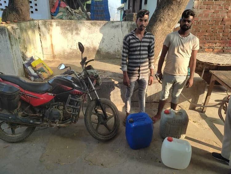 पंजवारा. विधानसभा चुनाव के मद्देनजर पंजवारा पुलिस ने मंगलवार की सुबह बिहार-झारखंड सीमा चेकपोस्ट पर विशेष वाहन जांच अभियान के दौरान दो युवक को 100 लीटर देशी महुआ शराब के साथ गिरफ्तार कर लिया. गिरफ्तार आरोपियों की पहचान मोनू कुमार (22 वर्ष), पिता दशरथ रजक और चुन्ना कुमार (23 वर्ष), पिता शिवन राम, दोनों रजौन थाना क्षेत्र के राजावर निवासी है. पुलिस ने बताया कि दोनों एक बाइक पर सवार थे, जिसका रजिस्ट्रेशन नंबर अंकित नहीं था तथा चेसिस और इंजन नंबर घिसे हुए पाये गये. तलाशी के दौरान उनके पास से एक प्लास्टिक डब्बे में 20 लीटर और गाड़ी के दोनों ओर लटके दो डब्बों में 40-40 लीटर, कुल 100 लीटर देशी महुआ चुलायी गयी शराब बरामद की गयी. पुलिस ने शराब को जब्त कर जब्ती सूची तैयार की और दोनों आरोपियों को न्यायिक हिरासत में बांका जेल भेज दिया. थानाध्यक्ष चंदन कुमार ने बताया कि अवैध शराब की तस्करी के खिलाफ अभियान लगातार जारी रहेगा और सीमा क्षेत्र में सघन निगरानी रखी जा रही.