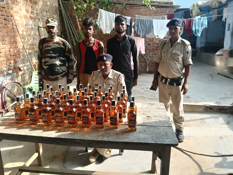 पंजवारा. अवैध शराब की तस्करी के विरुद्ध चलाये जा रहे विशेष जांच अभियान के तहत पंजवारा पुलिस ने मंगलवार को एक बाइक पर सवार दो तस्करों को 42 बोतल विदेशी शराब के साथ गिरफ्तार कर लिया. थानाध्यक्ष मनीष कुमार ने बताया कि यह कार्रवाई थाना क्षेत्र के माराटीकर मोड़ के पास की गयी. जांच के दौरान झारखंड के गोड्डा जिले की ओर से आ रही बाइक को रोका गया. तलाशी के दौरान बाइक सवार दोनों युवकों के पास मौजूद झोले से शराब बरामद की गयी, जिसकी कुल मात्रा 15.75 लीटर है. गिरफ्तार तस्करों की पहचान बांका जिले के रजौन थाना क्षेत्र के पुनसिया गांव निवासी रामविलास पासवान, पिता खोखा पासवान व सोहानी गांव निवासी विष्णु यादव, पिता चंद्रशेखर यादव के रूप में की गयी है. पुलिस ने दोनों के खिलाफ बिहार मद्य निषेध अधिनियम के तहत मामला दर्ज कर लिया है. बुधवार को दोनों आरोपियों को न्यायिक हिरासत में बांका भेज दिया जायेगा.