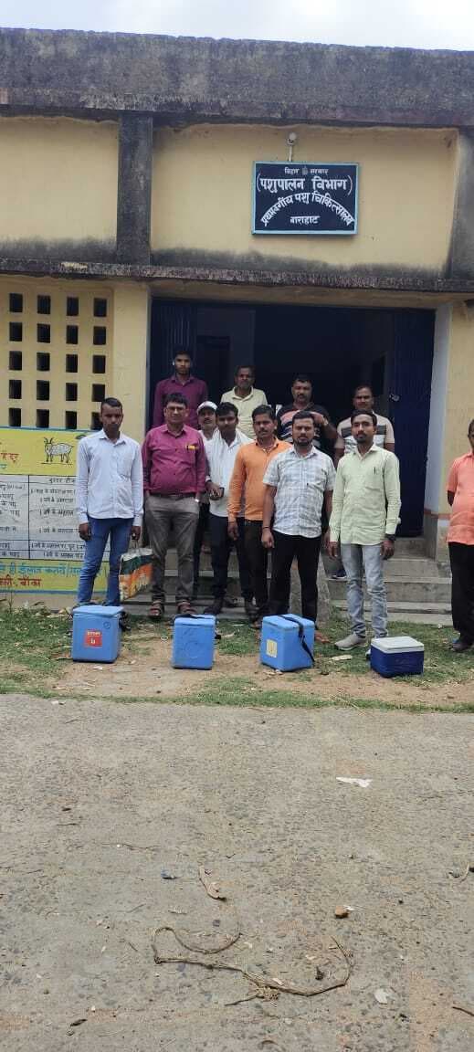 बाराहाट प्रखंड मुख्यालय से टीकाकरण अभियान की शुरुआत की गयी पंजवारा मवेशियों को खुरपका-मुंहपका जैसी घातक बीमारी से बचाने को लेकर शुक्रवार को बाराहाट प्रखंड मुख्यालय से व्यापक टीकाकरण अभियान की शुरुआत की गयी. उद्घाटन भ्रमणशील पशु चिकित्सा पदाधिकारी डाॅ. अनुरंजन कुमार रवि ने किया. परिचारी सुबोध हरिजन समेत प्रखंड के विभिन्न पंचायतों से आये टीकाकर्मी भी मौजूद थे. डॉ. रवि ने बताया कि इस अभियान के तहत प्रखंड में कुल 68,500 डोज खुरपका-मुंहपका रोधी टीके लगाये जायेंगे. यह टीके गाय, भैंस, चार से पांच माह की बाछी, पाड़ा और पाड़ी जैसे दुधारू व छोटे मवेशियों को निःशुल्क दिये जायेंगे. टीकाकरण का उद्देश्य मवेशियों को इस संक्रामक रोग से सुरक्षित रखना है, जिससे पशुपालकों को आर्थिक नुकसान न हो और दुग्ध उत्पादन प्रभावित न हो. डॉ. रवि ने बताया कि यह अत्यंत संक्रामक रोग है, जो मवेशियों के मुंह, जीभ, खुर और थन को प्रभावित करता है. अभियान को सफल बनाने के लिए हर पंचायत में टीका कर्मियों की टीम बनायी गयी है, जो घर-घर जाकर मवेशियों को टीका लगायेगी. उन्होंने पशुपालकों से अपील किया कि वे अपने मवेशियों को समय पर टीका लगवाएं और अभियान में सहयोग करें, ताकि इस रोग को पूरी तरह जड़ से खत्म किया जा सके.
